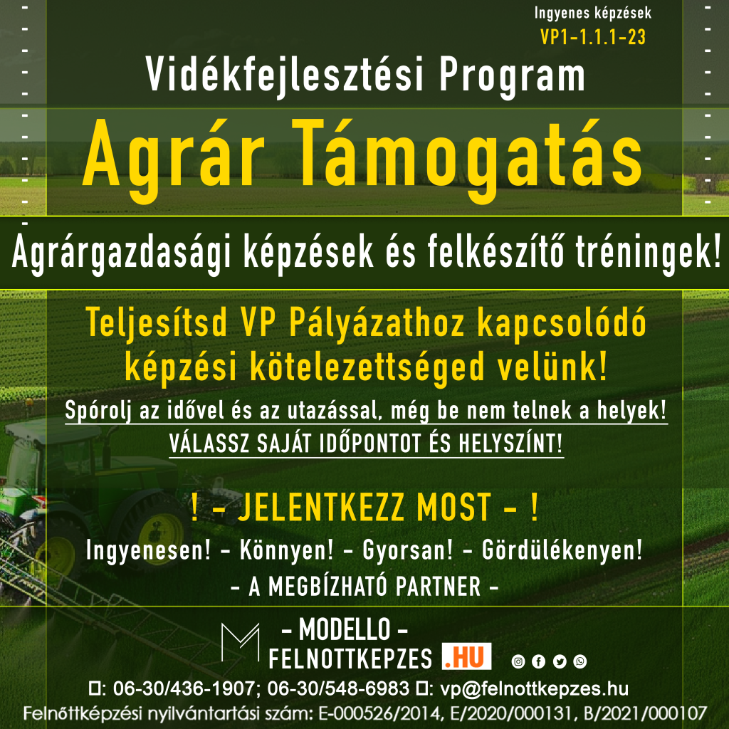 Hivatalos tájékoztatás Agrárgazdasági képzések és felkészítő tréningek című, VP1-1.1.1-23 kódszámú felhívás alapján a program a „KÉPZÉSRE KÖTELEZETTEK” részére.